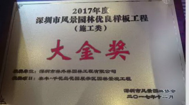 熱烈慶?!疤┴S·千花島”又榮獲大獎---深圳風(fēng)景園林類優(yōu)良樣板工程(施工類)大金獎!泰豐出品,必屬精品!