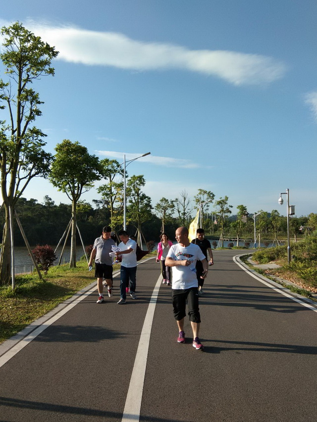“濱海風(fēng)情,陶都綠韻,山水林間,絲路花雨”,欽州園博園融合自然生態(tài)保護,園林園藝景觀,坭興陶文化,民俗風(fēng)情,海綿城市理念等新技術(shù)展示為一體,我們的活動就在這個集中展示了欽州市及廣西各城市的自然、人文景觀的公園進行?;顒赢?dāng)天,藍(lán)天白云,風(fēng)和日麗,在初夏的清風(fēng)中,各隊小伙伴們以飽滿的熱情和矯健的步伐開始了此次的徒步競走運動。