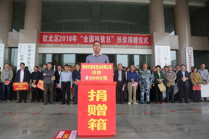 為倡導社會各界關注貧困問題,關愛貧困人口, 10月17日,在全國第五個“扶貧日”的上午,欽州市欽北區(qū)在區(qū)行政中心一樓舉行2018年“全國扶貧日”扶貧捐贈儀式。 泰豐地產代表欽州泰俊置業(yè)有限公司常務副總經理胡宏業(yè)先生參加了本次捐贈活動,并代表泰豐地產上臺進行了愛心捐款。