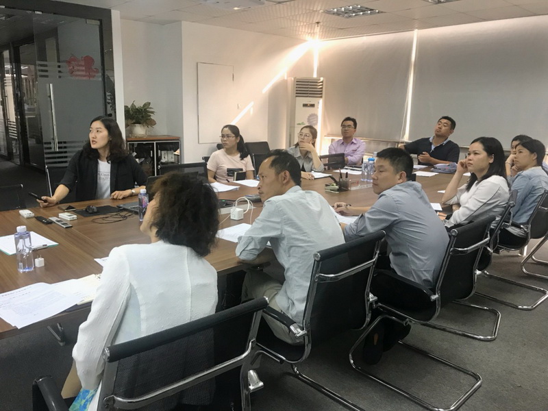 現(xiàn)場同事就績效考核調(diào)整內(nèi)容等問題向人力資源部踴躍提問,講師一一作出解答,會議氣氛活躍熱烈。