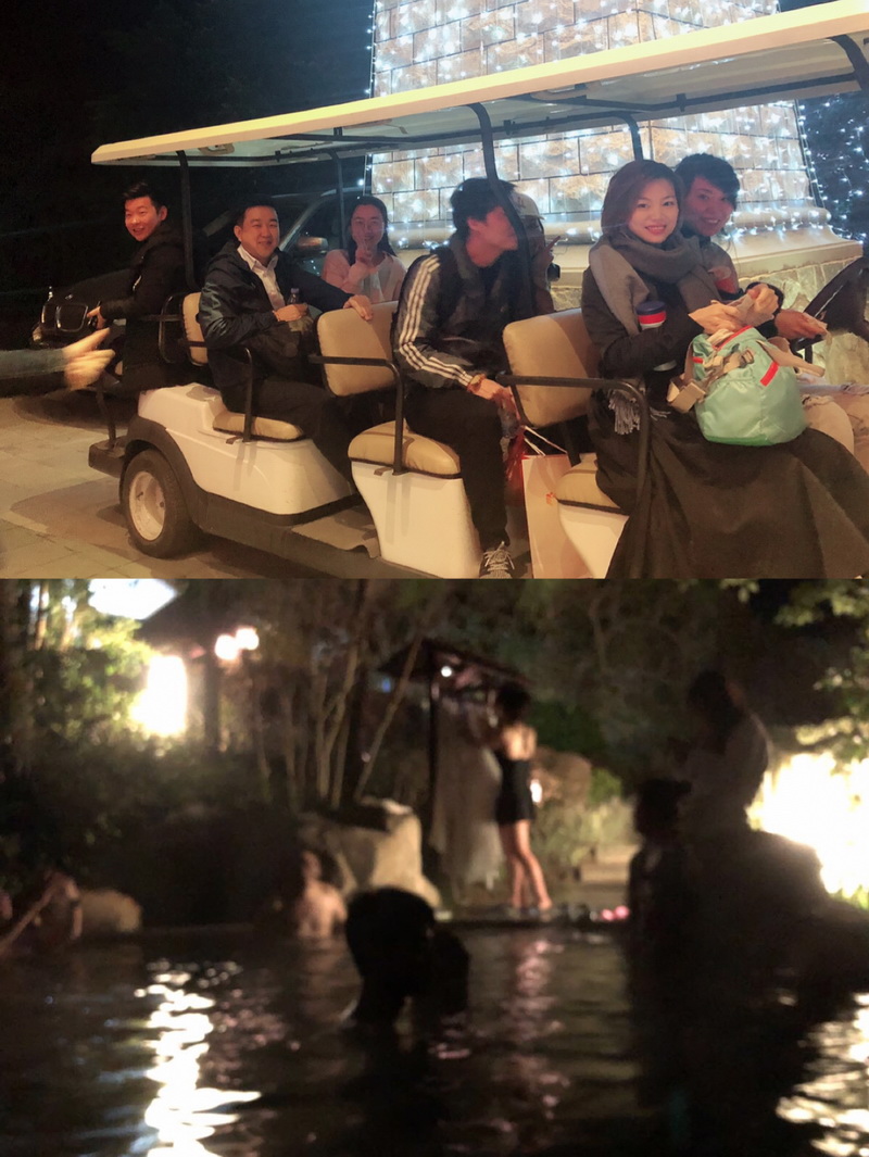 歷經(jīng)兩個(gè)半小時(shí)的車程,終于抵達(dá)目的地??粗徊薀粞b飾的燈火通明的酒店,想著熱氣騰騰的溫泉。也早已拋開長時(shí)間車程帶來的疲憊。換好行裝,結(jié)伴前往各式各樣的溫泉池:牛奶池、玫瑰池、紅酒池、親親魚療池……走在鵝卵石鋪好的小路,穿梭于綠樹從間,大家享受著屬于夜間的寧靜與愉悅。
